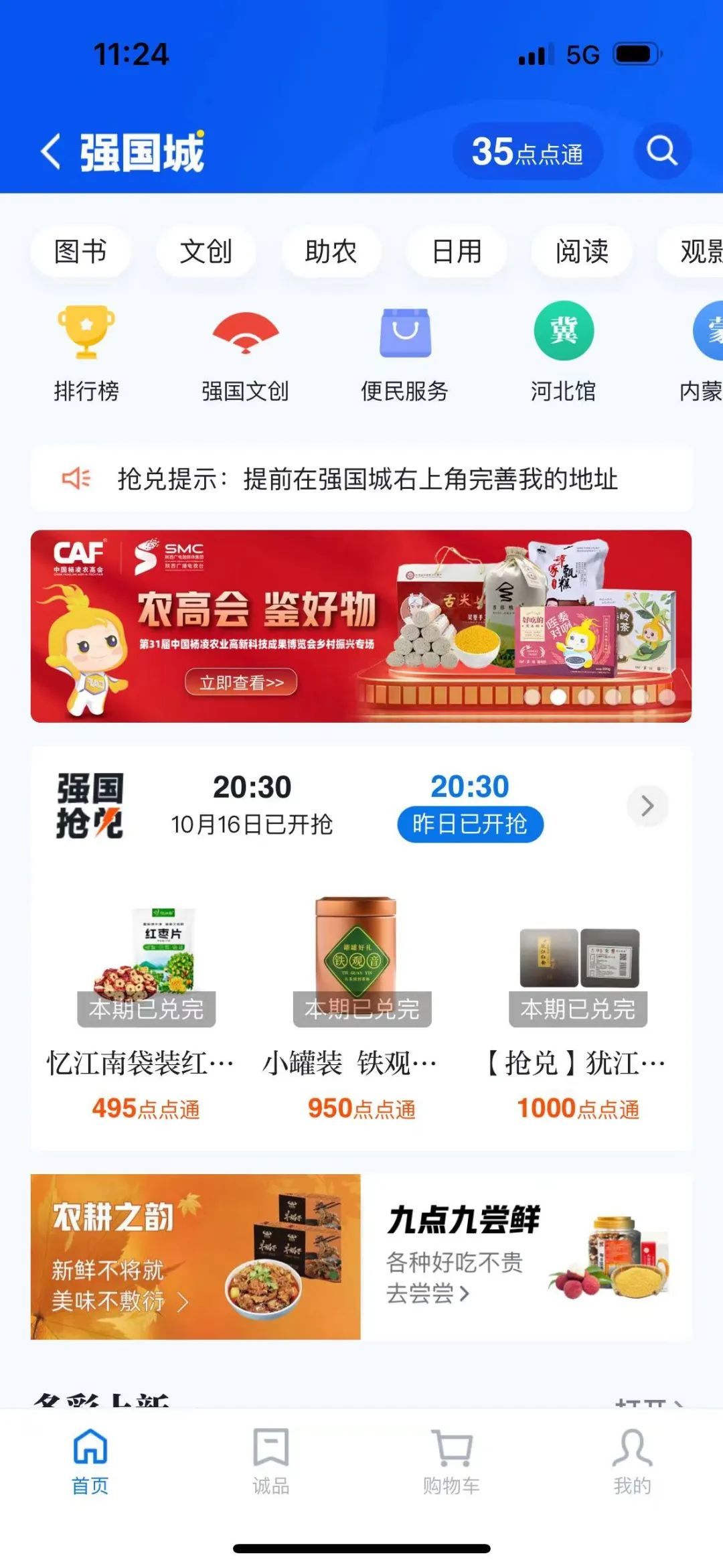在今日率先上线学习强国农高会电商销售专题中,平台用户进入学习强国APP后,可按照“首页——我的——强国城——主题大图”流程进入销售专题,并按照平台规则,以积分兑换、现金购买的形式享受农高会电商销售专题中的涉农优品。
