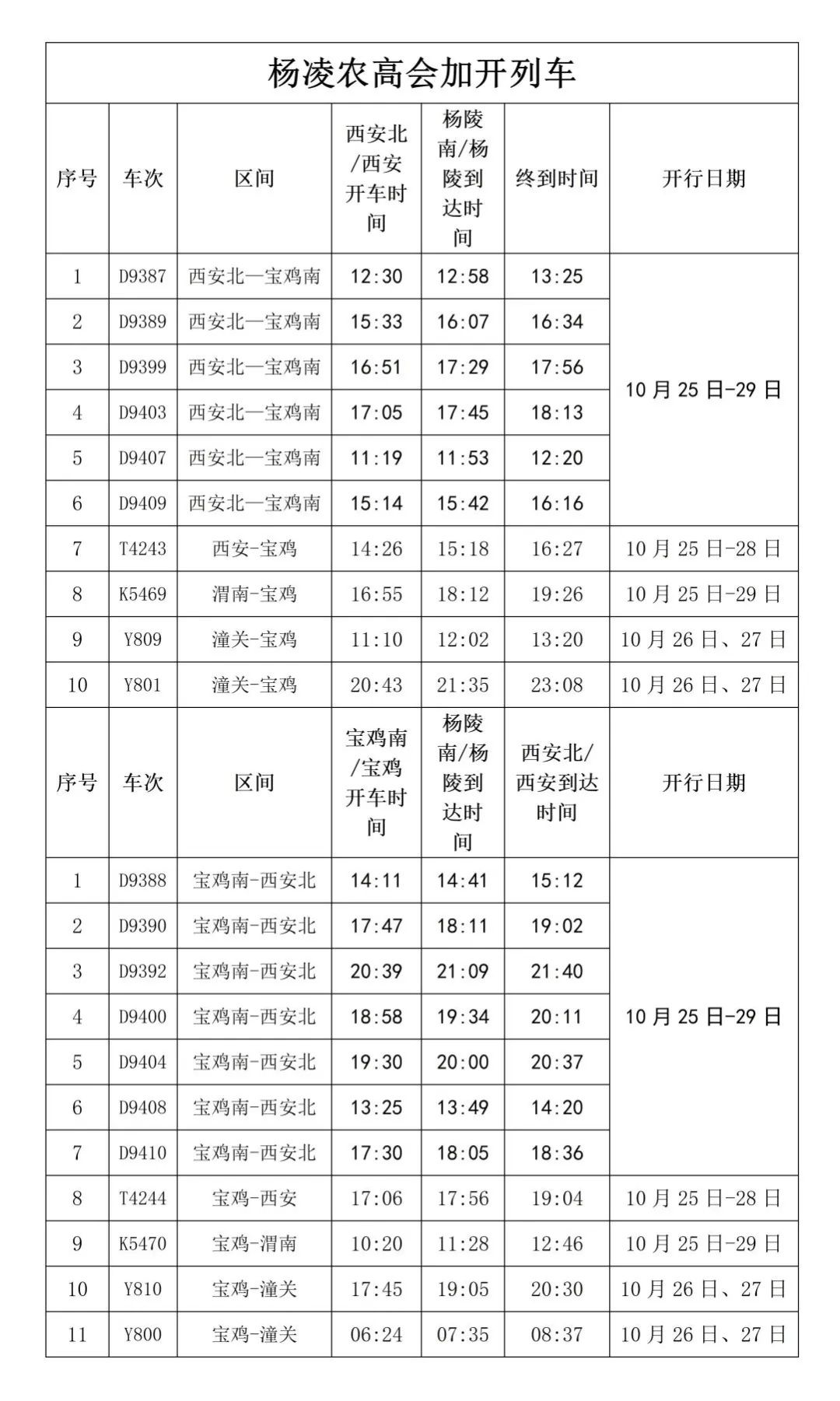 为了满足广大参展参会群众对杨凌农高会的热情参与和乘车需求,近日中国铁路西安局集团有限公司西安站宣布了一个令人振奋的好消息:加开21趟次列车,确保参展参会客商和群众出行无忧!
