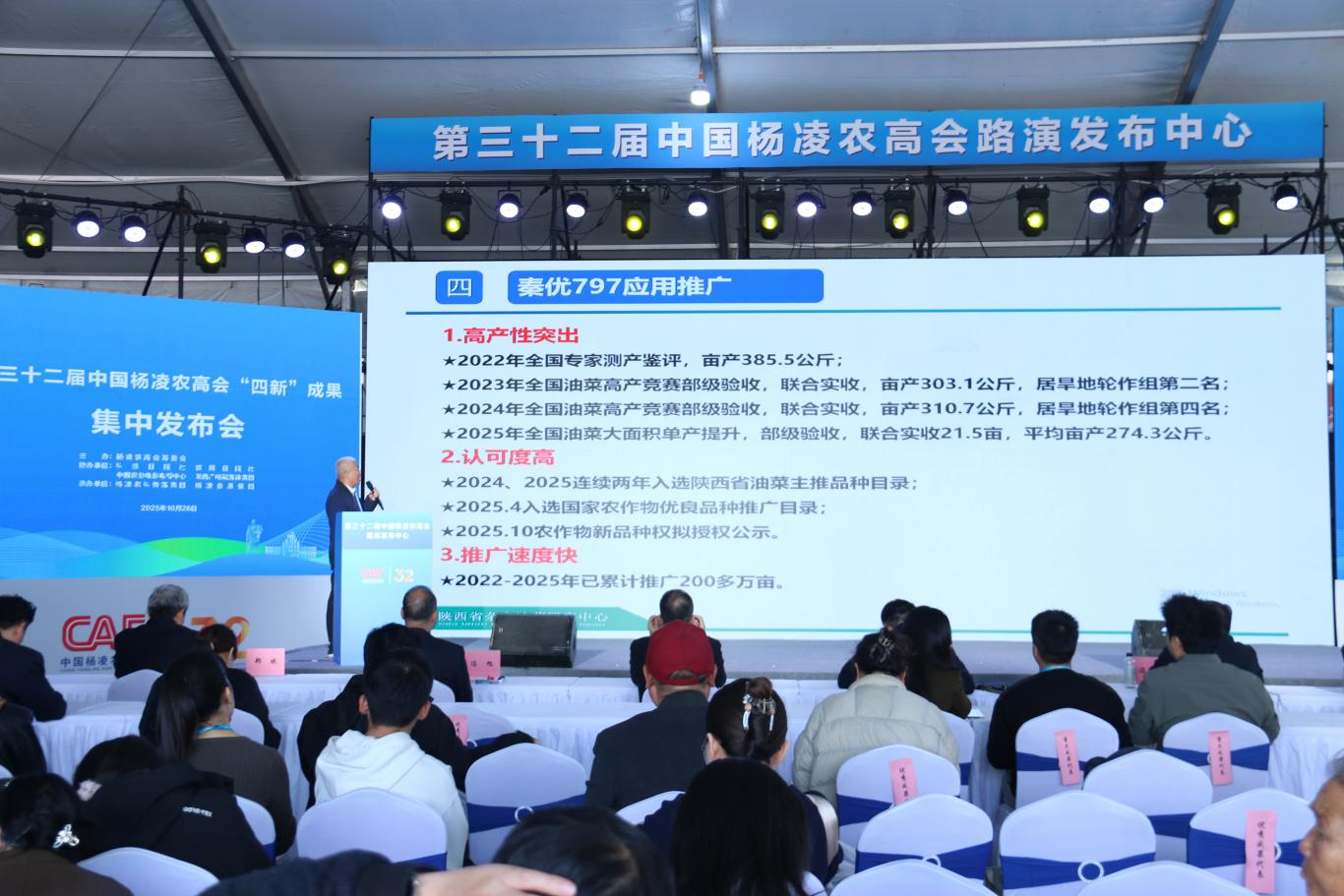 推介会上,陕西省杂交油菜研究中心研究员任军荣介绍,“秦优797”不仅是中心继“世界杂交油菜之父”李殿荣研究员培育的“秦油2号”“秦优7号”之后的又一突破性品种,更成为我国油菜产业高质量发展的新标杆,为国家粮油安全注入了强劲的“农科力量”。