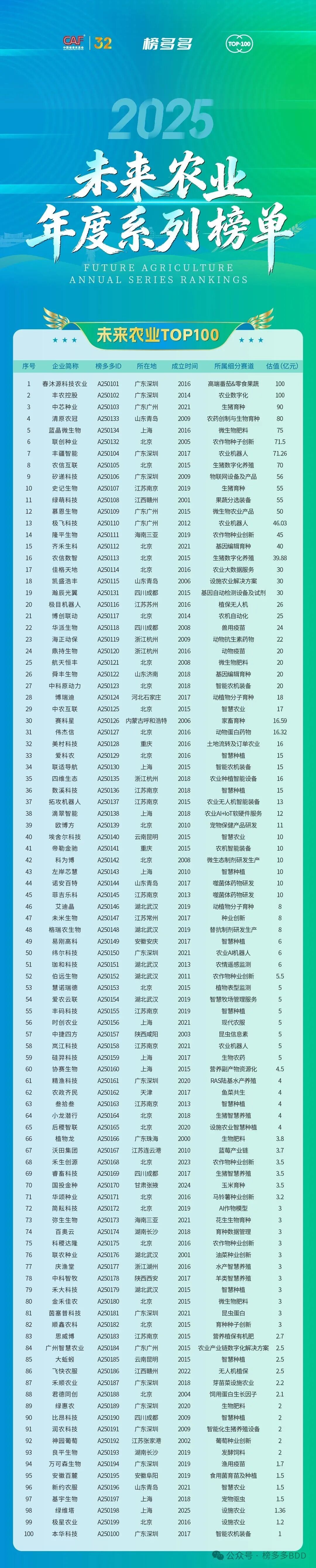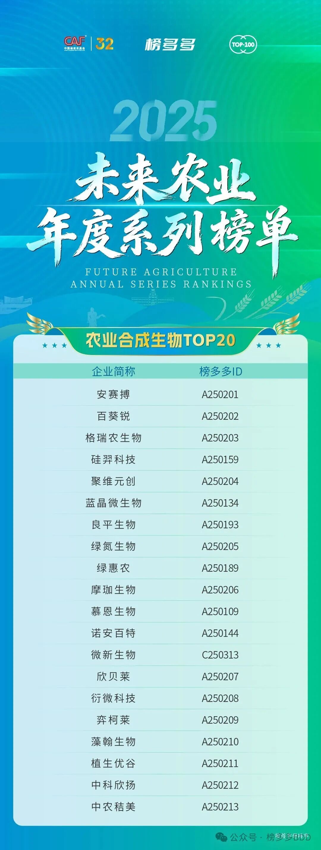 10月27日,第三届未来农业产业发展大会暨合成生物赋能农业科技论坛在杨凌召开。会上,发布了榜多多“未来农业年度系列榜单”,包括未来农业TOP100、农业合成生物TOP20、年度创新农科园区TOP20、未来农业新星企业、年度卓越企业、年度农科园区创新奖、西北特色大单品TOP30。