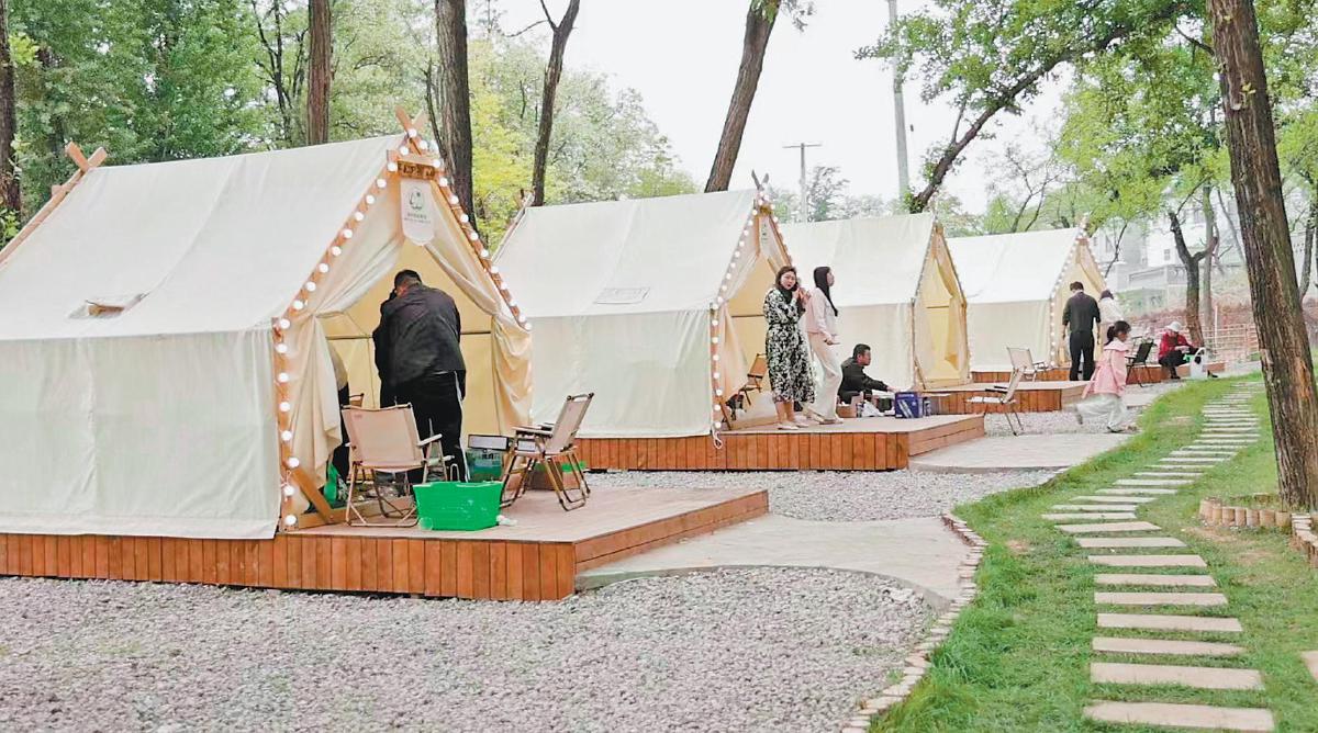 绿荫下草坪如茵、小桥处流水潺潺、帐篷下三五亲友欢声笑语……近日,走进绥德县白家硷镇郝家坪村森野露营基地,宛如步入画中,诗意田园,令人陶醉。