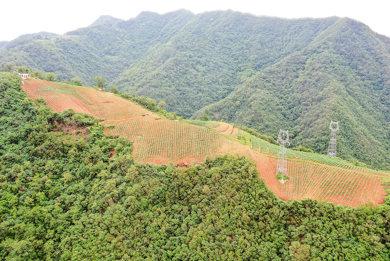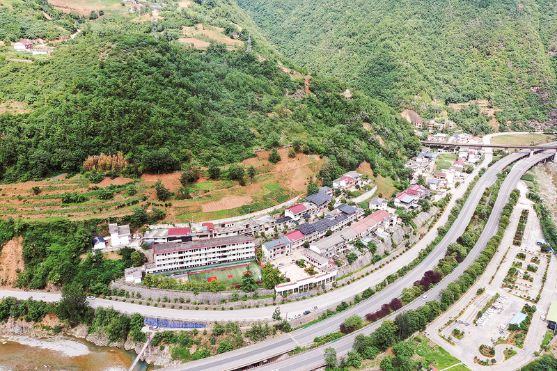 俯瞰之下的和坪村,国道、高速公路、铁路穿境而过,区位条件优越。