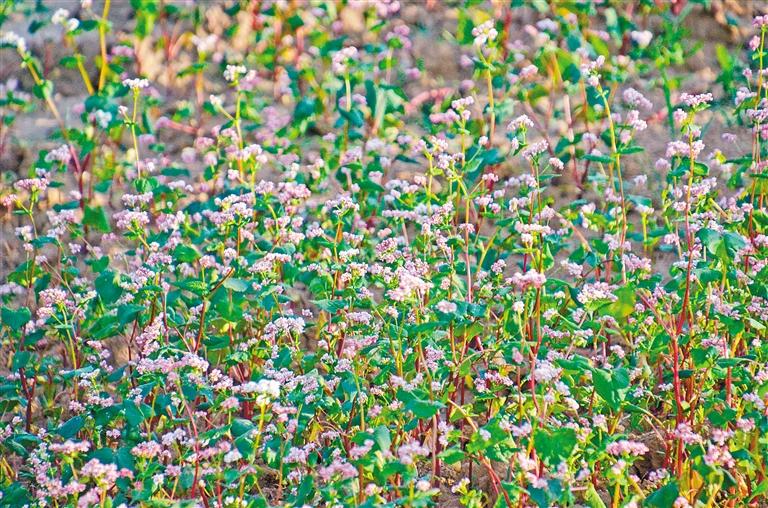 5月23日,位于蓝田县九间房镇荞麦岭的数百亩荞麦花盛开,吸引游人前来观赏。(记者 谢伟 摄)