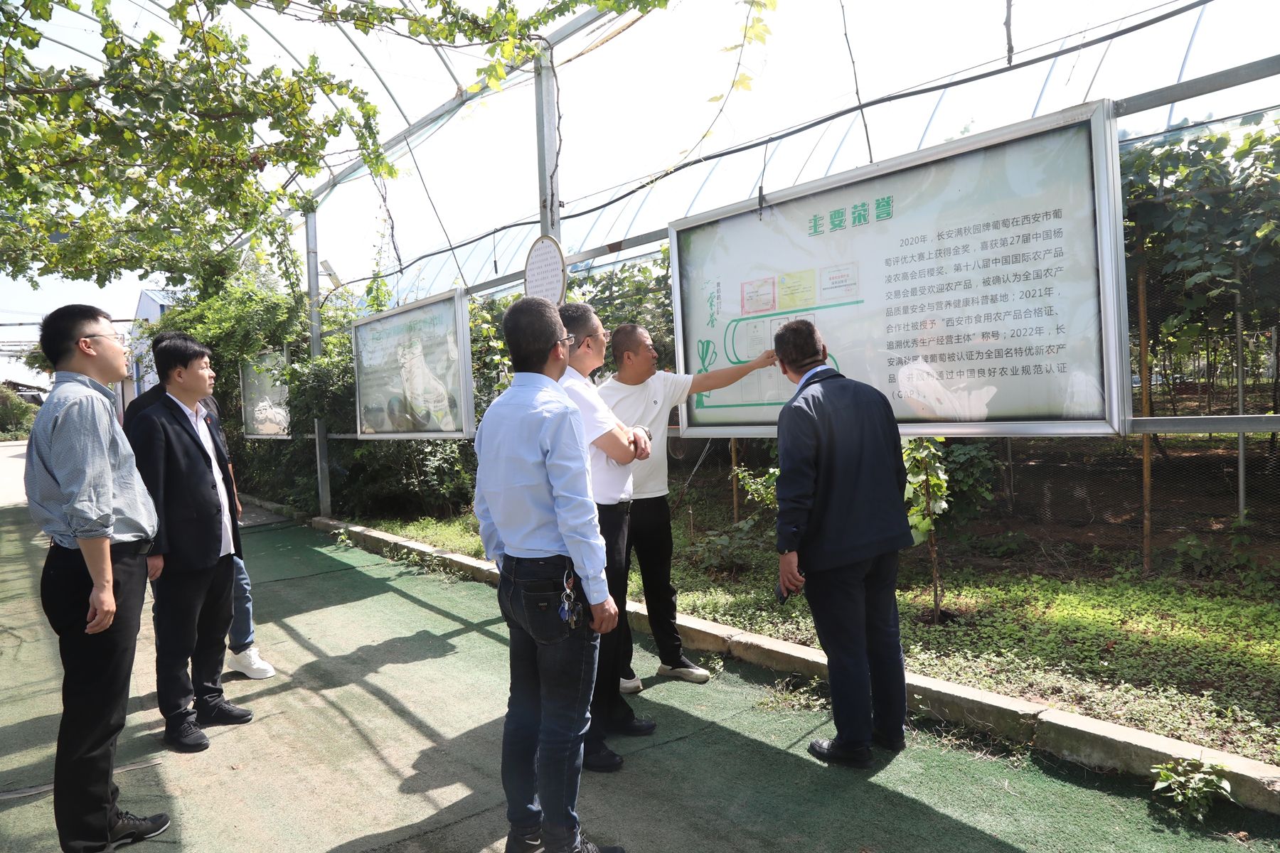 当天,长安区农业农村局、长安邮政的相关负责人专程来到满秋园葡萄园考察指导。在园区负责人冯江涛的陪同下,一行人实地查看了葡萄的采摘流程、分拣标准与包装细节,详细询问了当前葡萄园在电商销售中遇到的痛点、冷链物流需求及资金支持诉求。