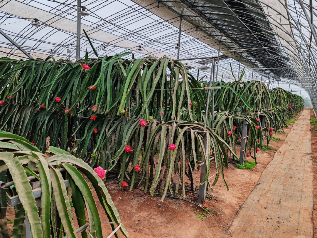 农高会的平台效应,让青皮她园的朋友圈越扩越大。展馆与田野同频共振,让技术“可见、可触、可互动”,让农业真正“鲜活”起来。展厅里,鲜果、NFC鲜榨果汁、果酒等全产业链产品琳琅满目;基地中,火龙果、荔枝、莲雾等热带作物与榴莲试种区相映成趣,更专门设有海南万宁300亩榴莲基地的品种展示。2024年农高会期间,仅田间展就实现40多万元创收,陕西神木客户现场签下14万元种苗订单。如今,基地已拥有20余种火龙果种质资源,年产鲜果500吨,亩均产值突破10万元。