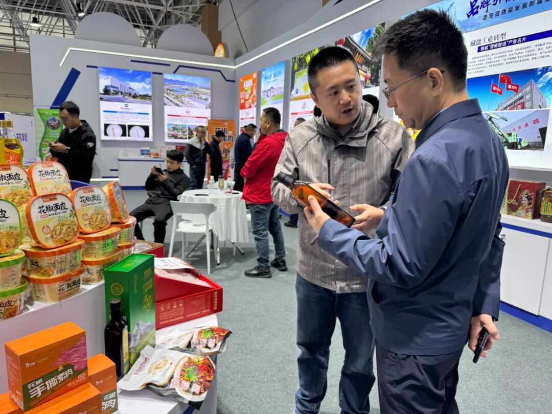 展区现场,作为“中国绿色食品菜籽油销量第一”的标杆,长安花高原小粒菜籽油依托青海门源3200米高原种植基地,从原料到品控构建全链路标准体系;石羊安心肉则以“从农场到餐桌”的全链条安全保障,诠释“安心”内核。期间,陕西省发展和改革委员会党组成员、副主任杨武民,渭南市政府副秘书长李世峰等领导巡馆参观,详细听取产品介绍与企业发展情况,对集团全产业链布局及产品品质给予高度好评。