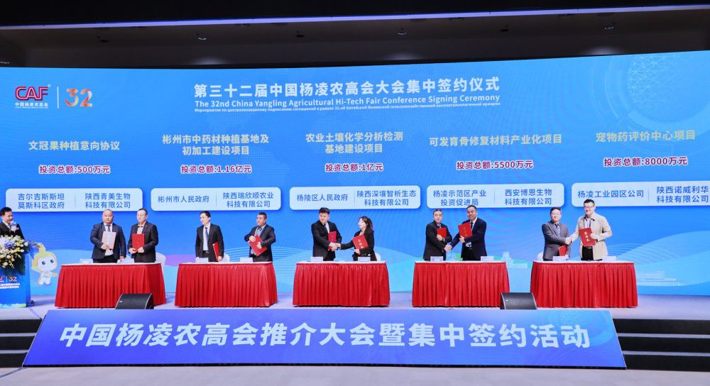 10月26日,第32届中国杨凌农高会全球推介大会暨集中签约活动在陕西杨凌举办。陕西省人民政府副省长、杨凌示范区管委会主任武文罡,巴基斯坦科学与技术部巴基斯坦科学基金会主席穆罕默德·阿克马尔,伊朗农业部副部长兼农业研究、教育与推广组织主席古拉姆雷扎·古尔穆罕默迪,巴林王国驻华大使穆罕默德·谢胡出席大会。
