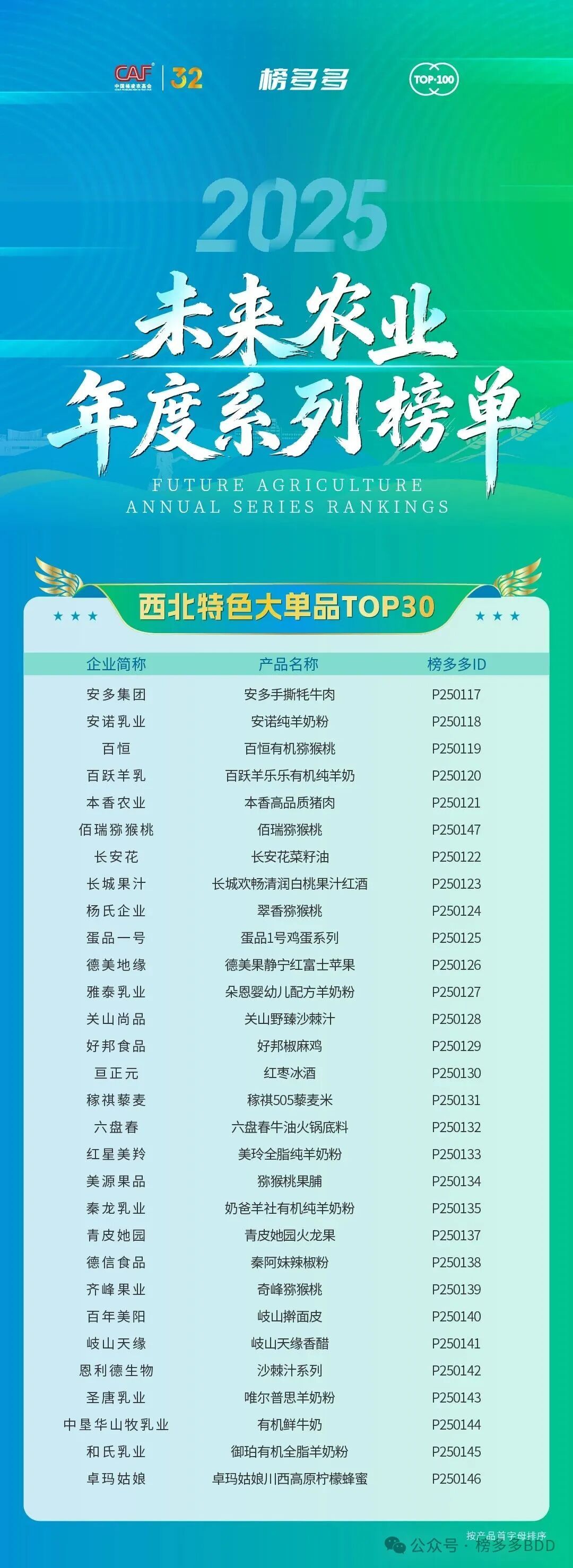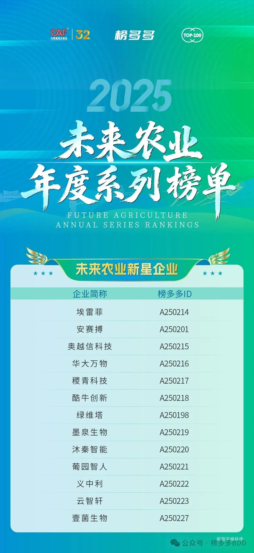 10月27日,第三届未来农业产业发展大会暨合成生物赋能农业科技论坛在杨凌召开。会上,发布了榜多多“未来农业年度系列榜单”,包括未来农业TOP100、农业合成生物TOP20、年度创新农科园区TOP20、未来农业新星企业、年度卓越企业、年度农科园区创新奖、西北特色大单品TOP30。