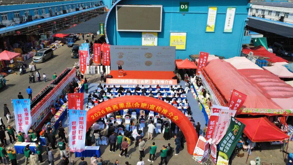 3月28日,2026陕西果品(合肥)专场推介会在合肥周谷堆大兴农产品国际物流园水果区举行。